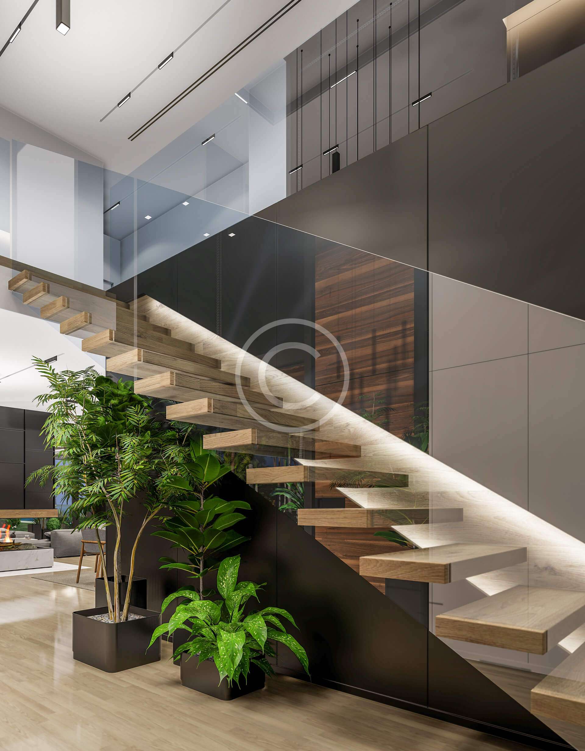 Clean architectural lines, warm tones, and elegant decor creating a calm and refined atmosphere.